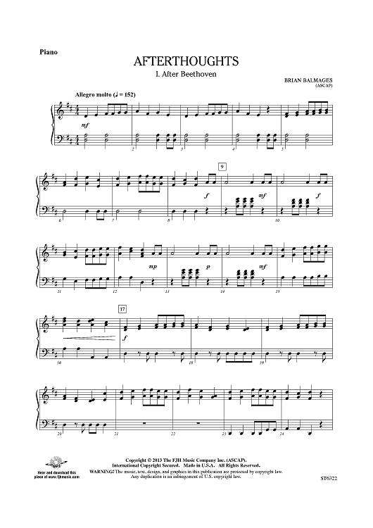 "Afterthoughts - Piano" Sheet Music by Brian Balmages