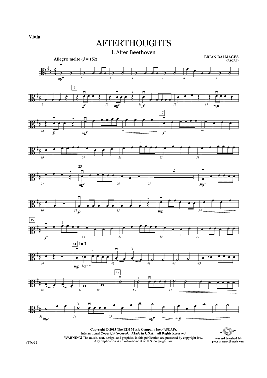 "Afterthoughts - Viola" Sheet Music by Brian Balmages