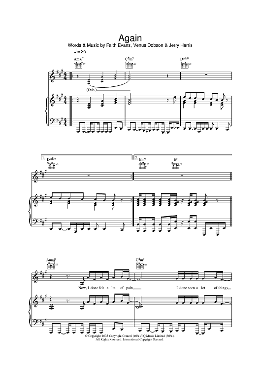 Digital Sheet Music for Again by Faith Evans, Venus Dobson, Jerry Harris scored for Piano/Vocal/Chords; id:387005