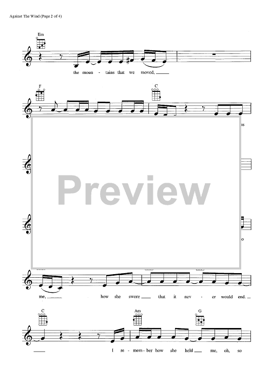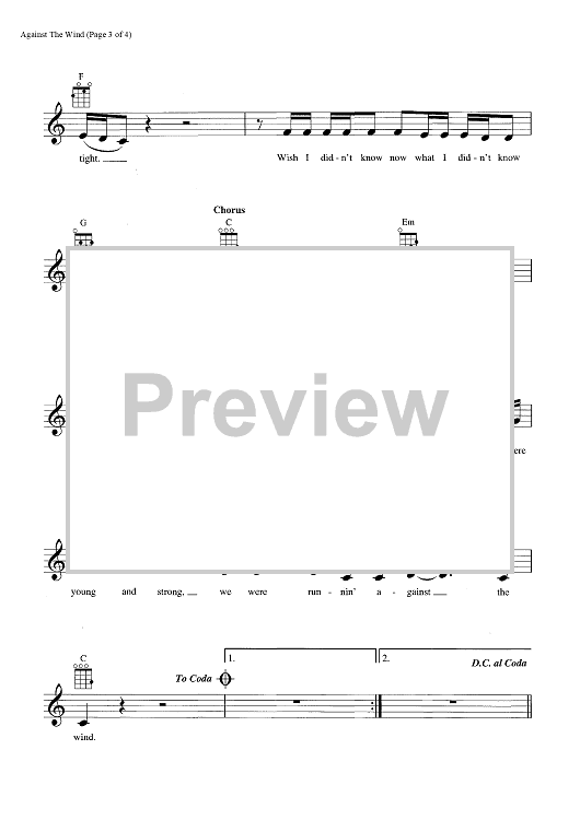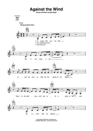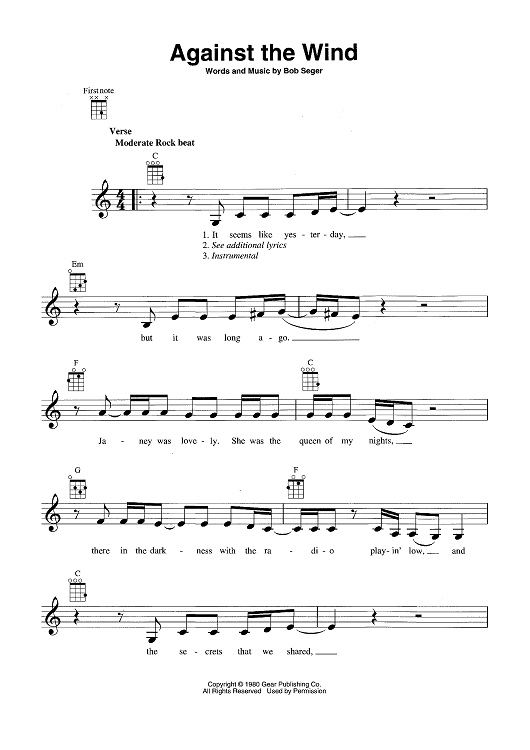 Digital Sheet Music for Against The WInd by Bob Seger scored for Ukulele/Vocal; id:465359
