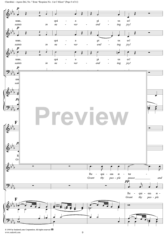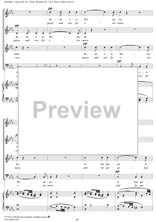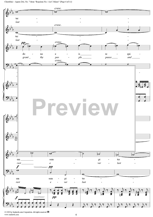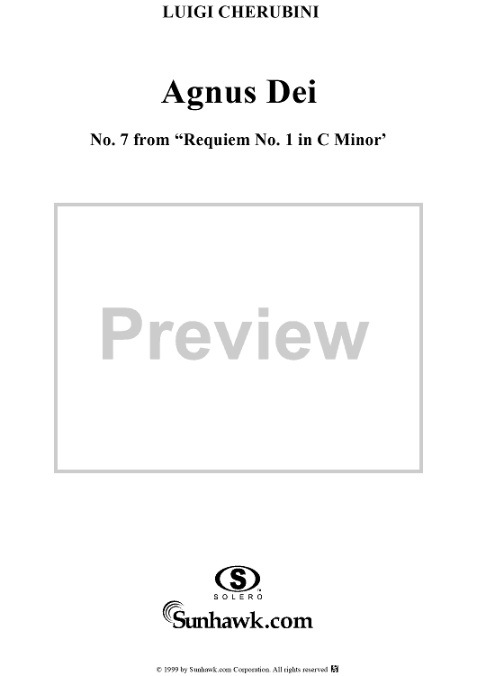 Digital Sheet Music for Agnus Dei - No. 7 from "Requiem No. 1 in C minor" by Luigi Cherubini scored for Four-part Mixed Chorus/Piano; id:273284
