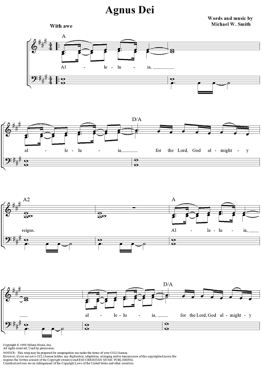 Digital Sheet Music for Agnus Dei (Passion Version) by Michael W. Smith scored for Piano/Vocal/Chords; id:113964