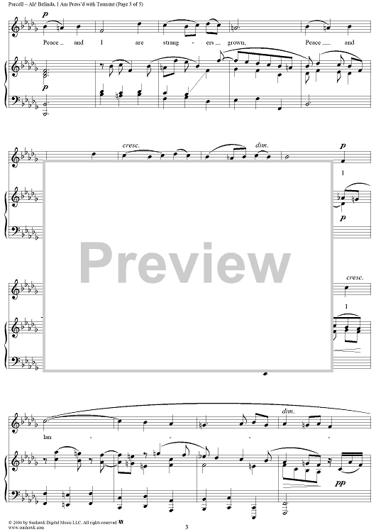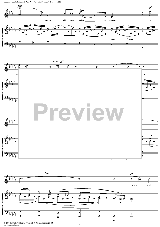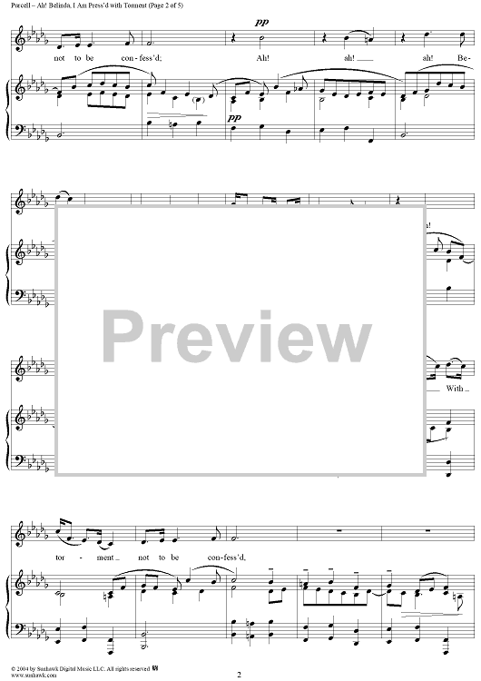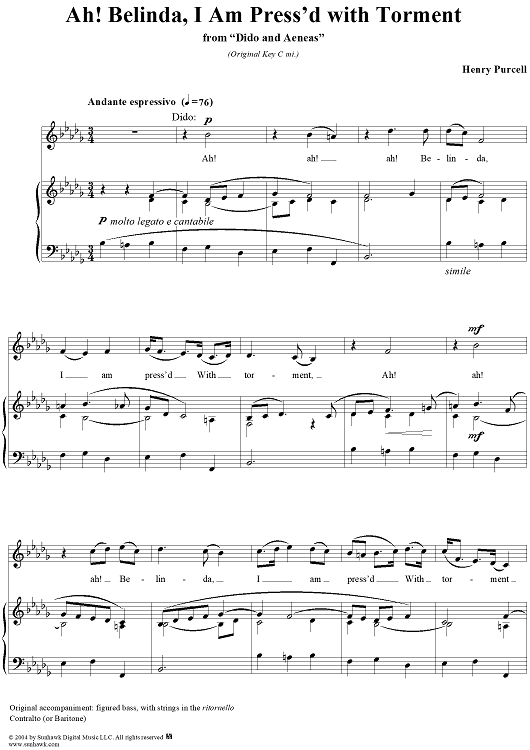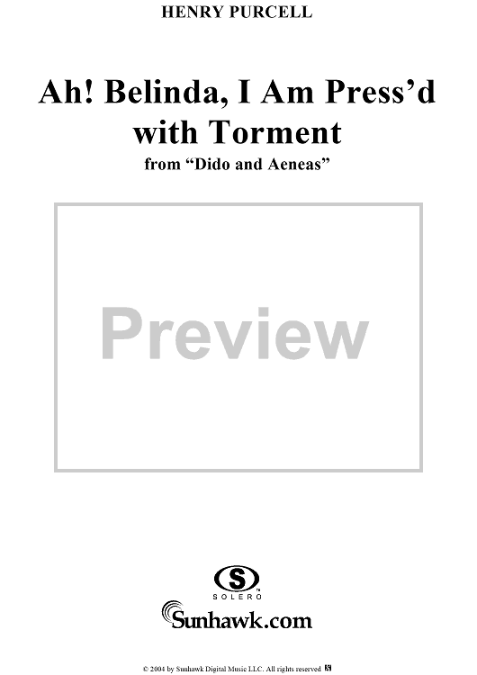 Digital Sheet Music for Ah! Belinda, I Am Press'd with Torment by Henry Purcell scored for Voice/Piano; id:303500