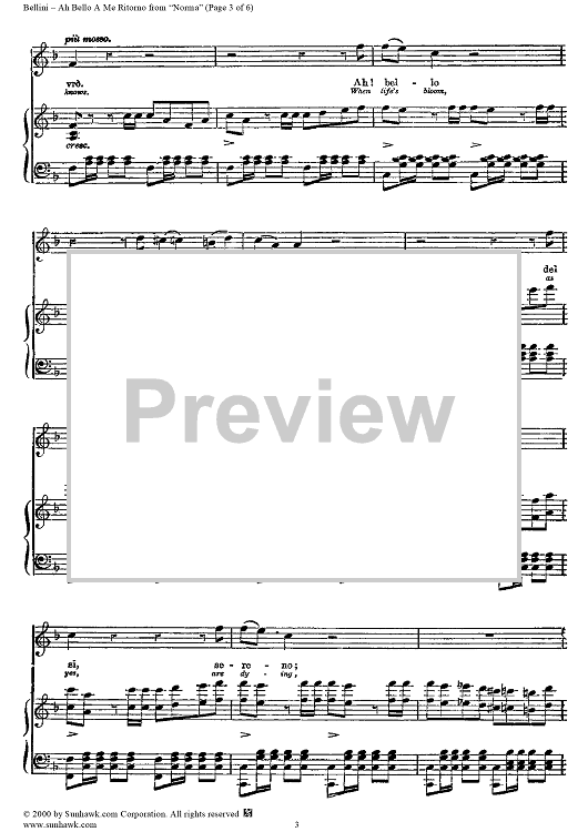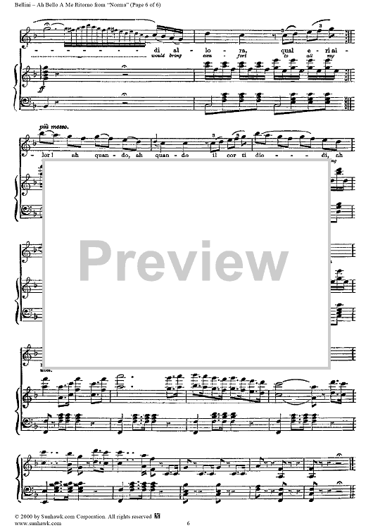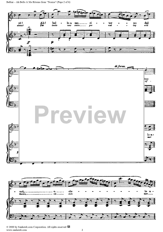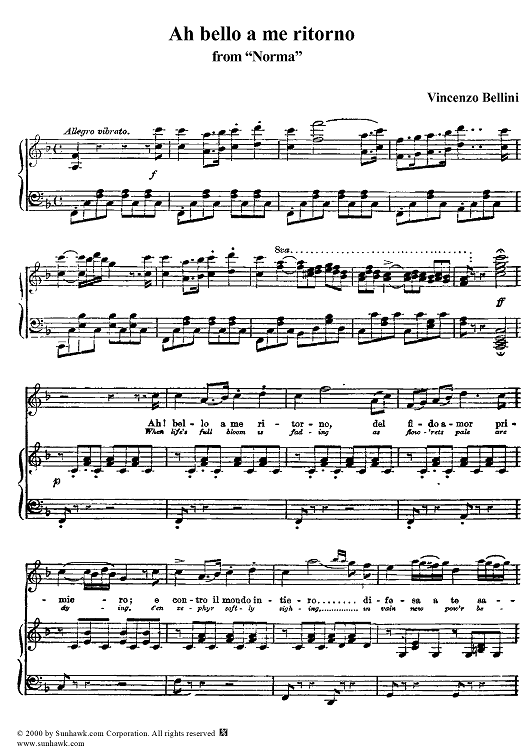 Digital Sheet Music for Ah bello a me ritorno by Vincenzo Bellini scored for Voice/Piano; id:254433