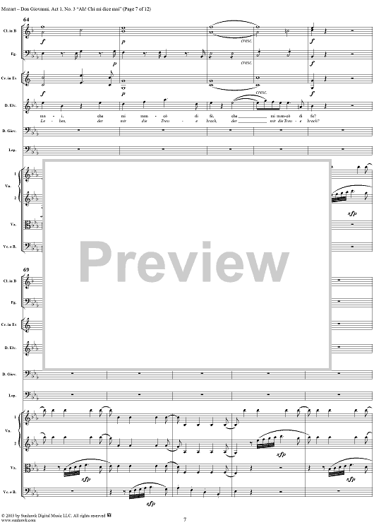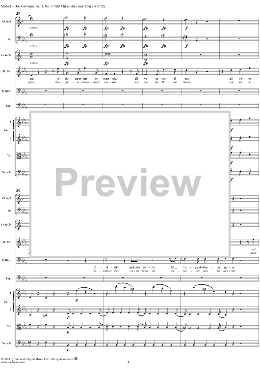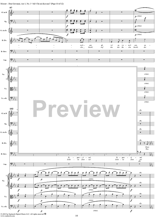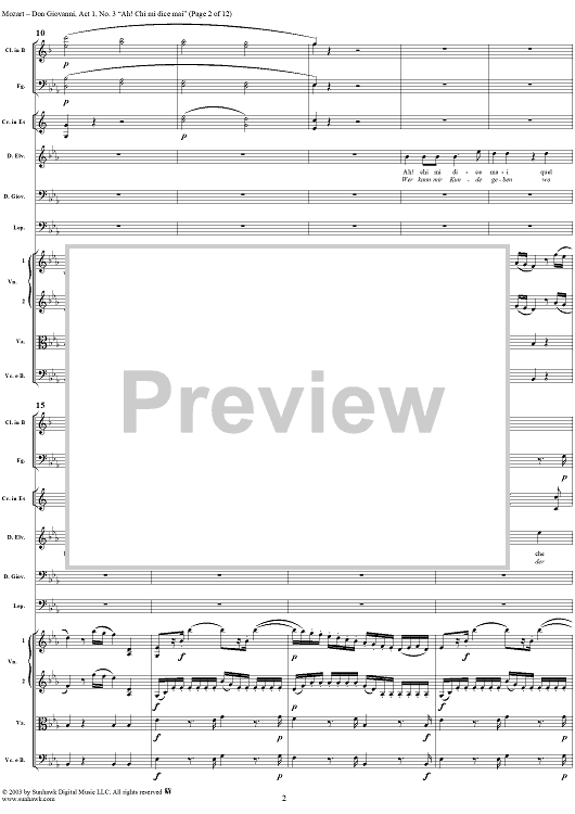 Digital Sheet Music for "Ah! Chi mi dice mai", No. 3 from "Don Giovanni", Act 1, K527 - Full Score by Wolfgang Amadeus Mozart scored for Voice and Orchestra; id:291899