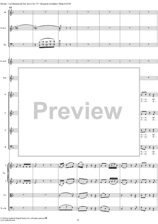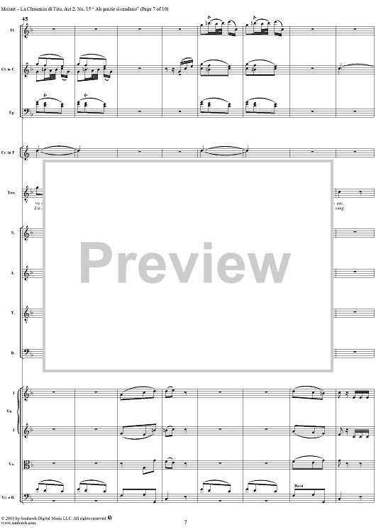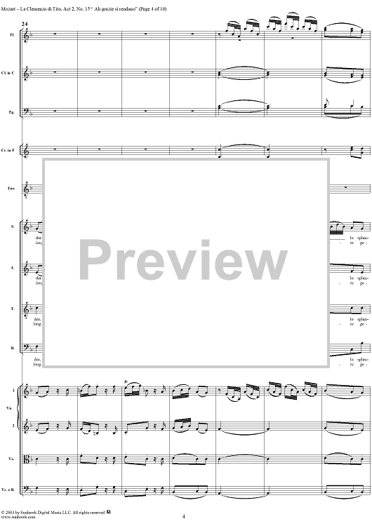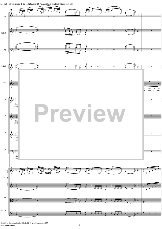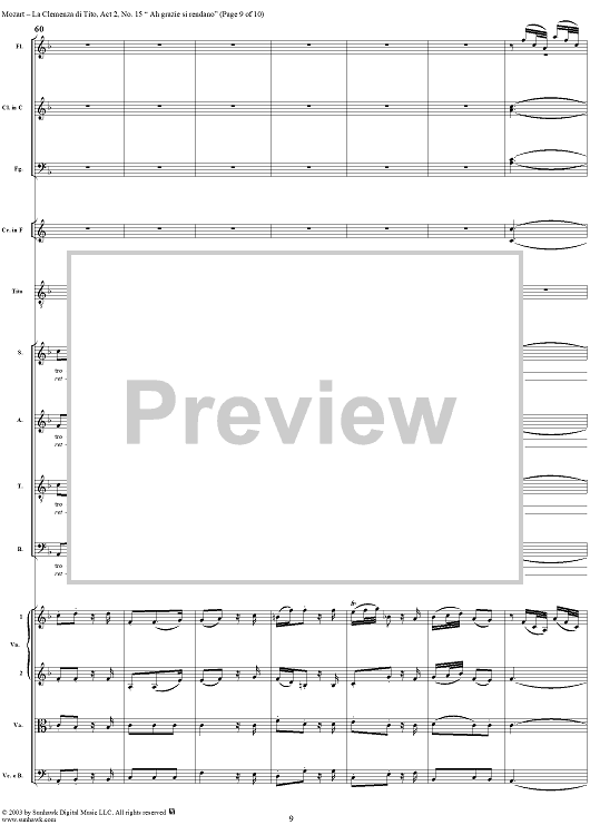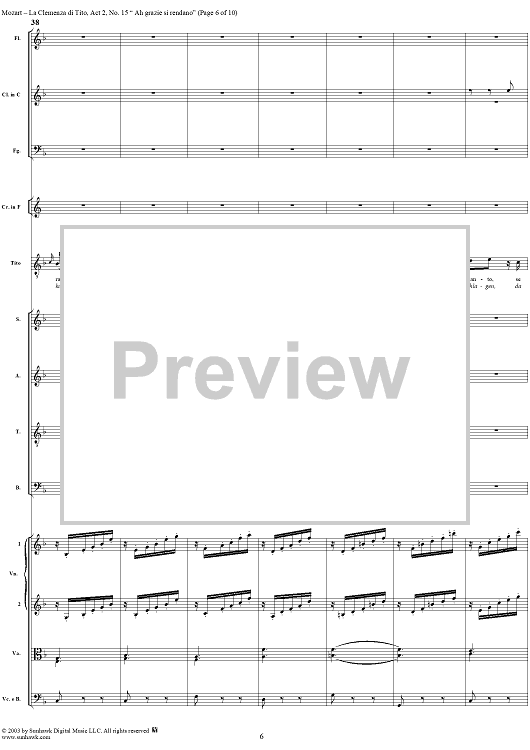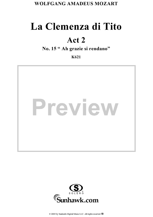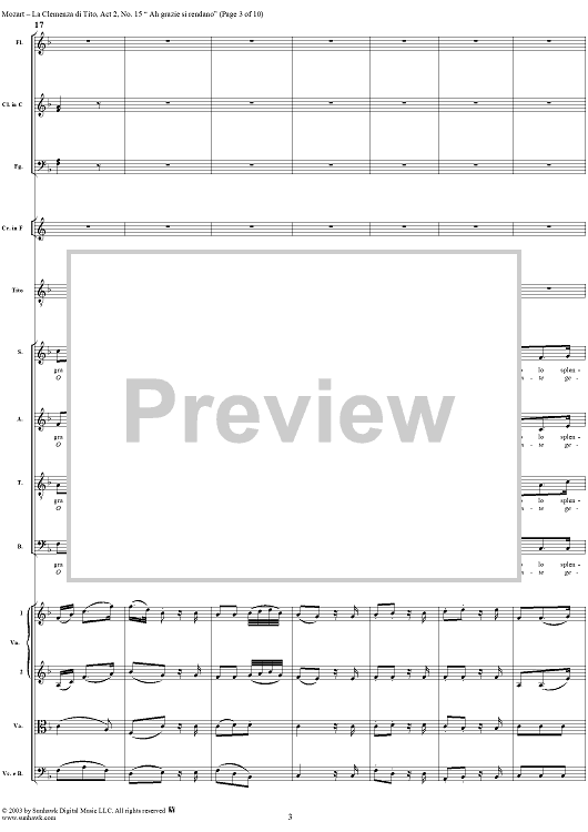 Digital Sheet Music for "Ah grazie si rendano", No. 15 from "La Clemenza di Tito", Act 2 (K621) - Full Score by Wolfgang Amadeus Mozart scored for Voice and Orchestra; id:291609