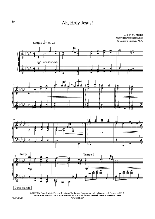 Digital Sheet Music for Ah, Holy Jesus! by Johann Crüger, Gilbert M. Martin scored for Piano Solo; id:434051