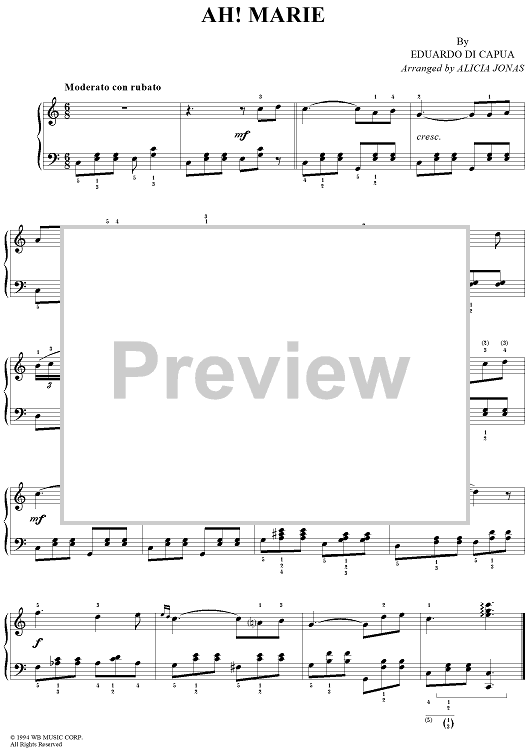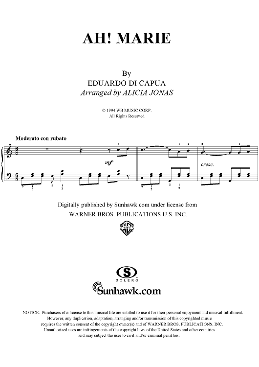 Digital Sheet Music for Ah! Marie by Alicia Jonas, Eduardo di Capua scored for Piano Solo; id:271782