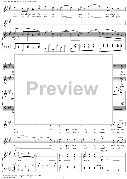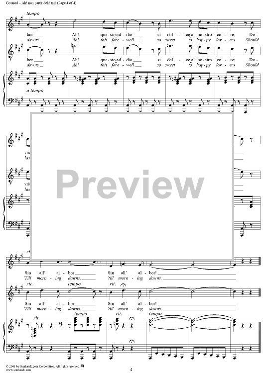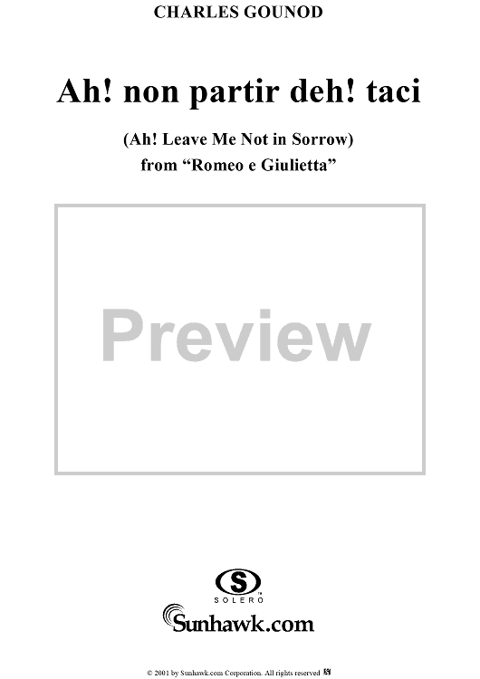 "Ah! non partir deh! taci" Sheet Music by Charles Gounod