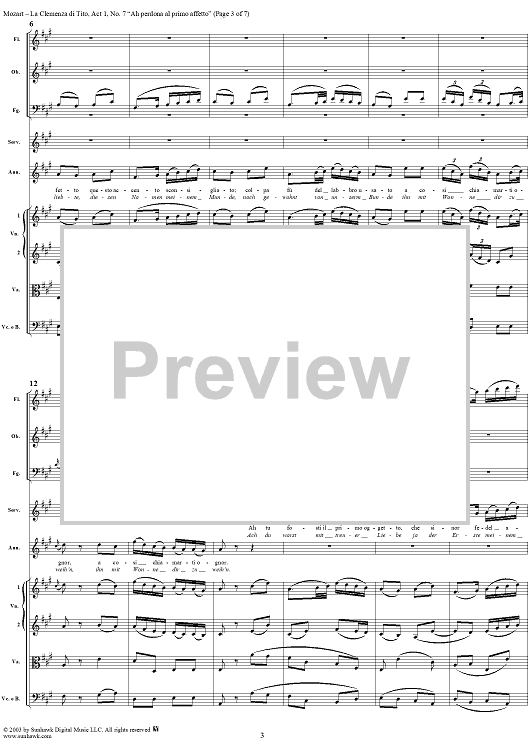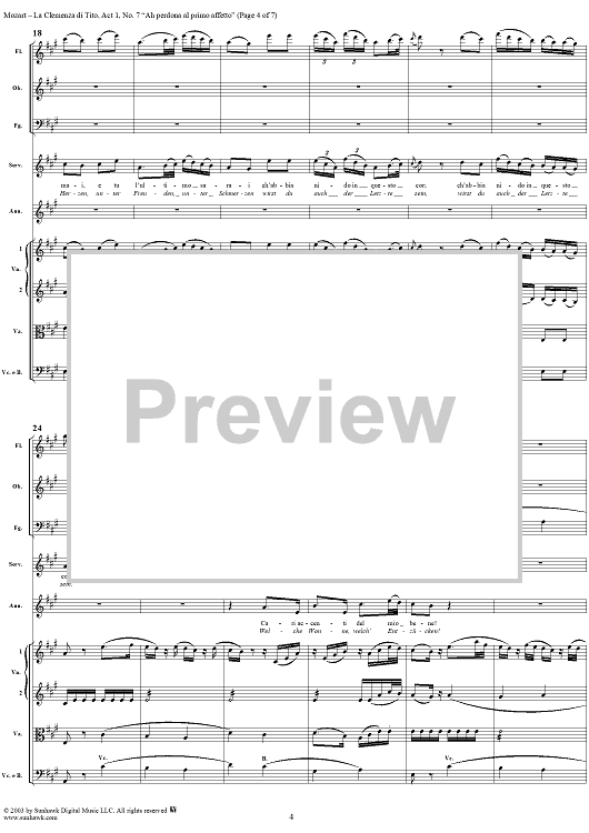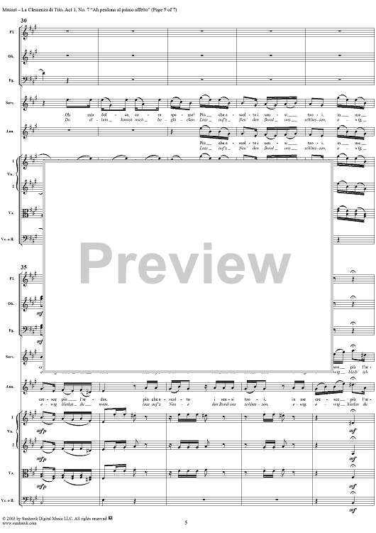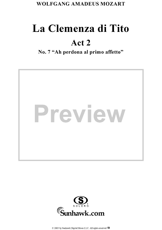 Digital Sheet Music for "Ah, perdona al primo affetto", No. 7 from "La Clemenza di Tito", Act 1 (K621) - Full Score by Wolfgang Amadeus Mozart scored for Voice and Orchestra; id:291601