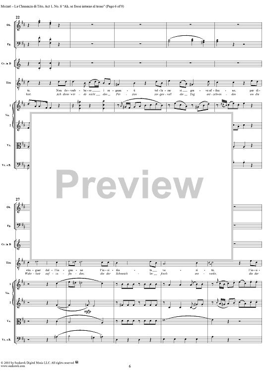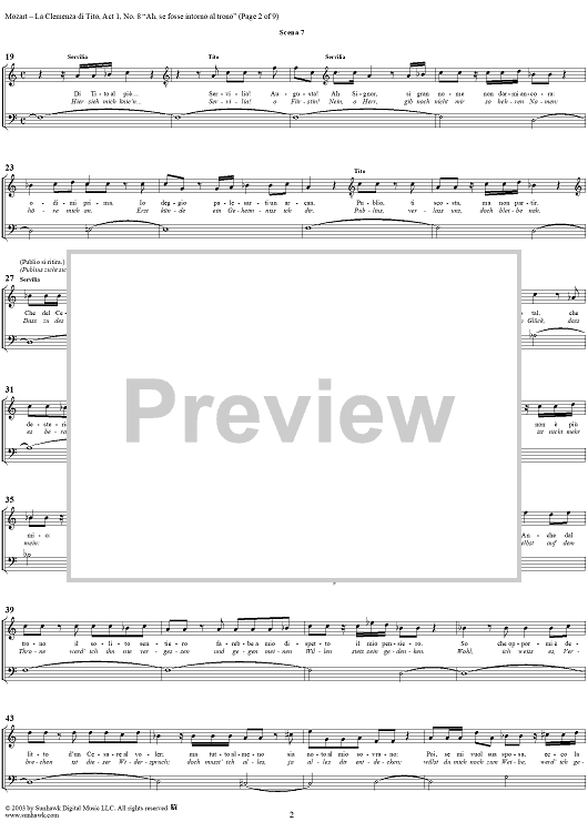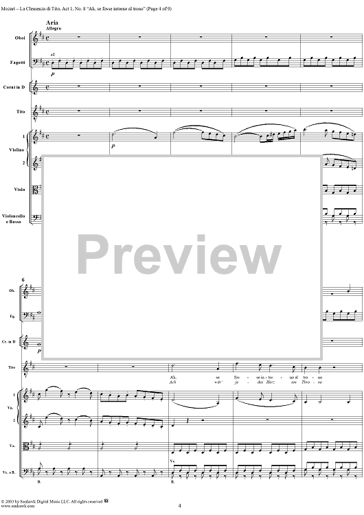 Digital Sheet Music for "Ah, se fosse intorno al trono", No. 8 from "La Clemenza di Tito", Act 1 (K621) - Full Score by Wolfgang Amadeus Mozart scored for Voice and Orchestra; id:291602