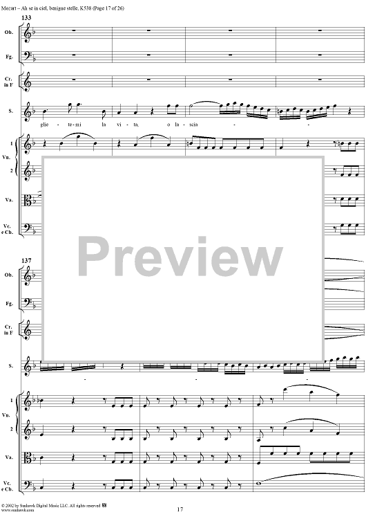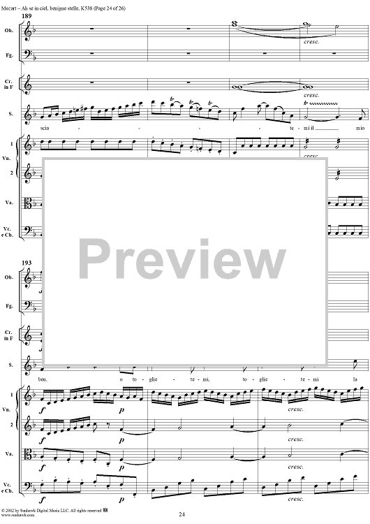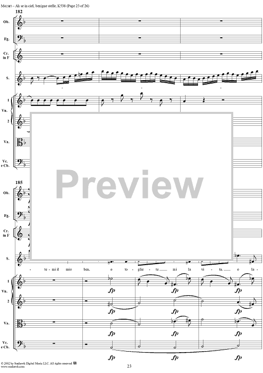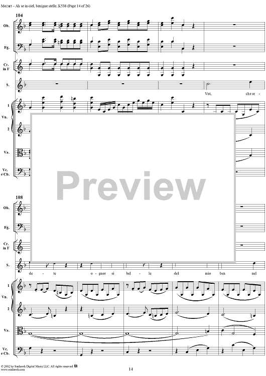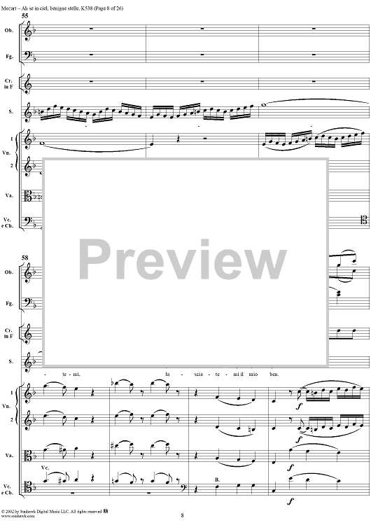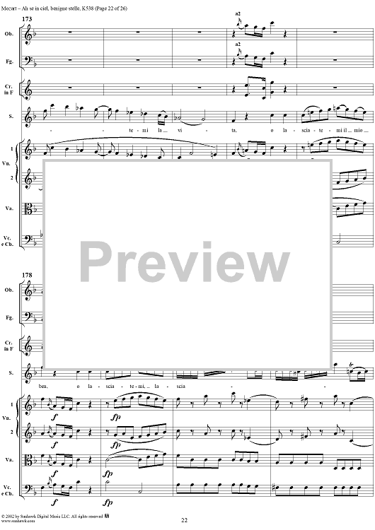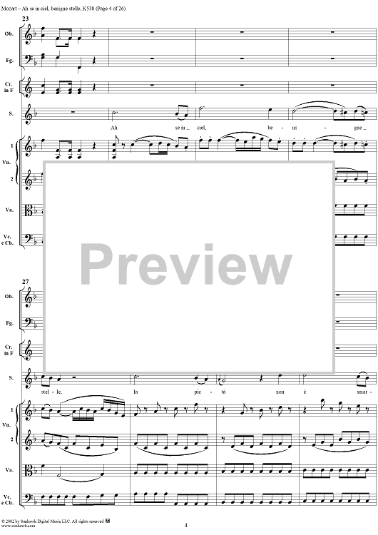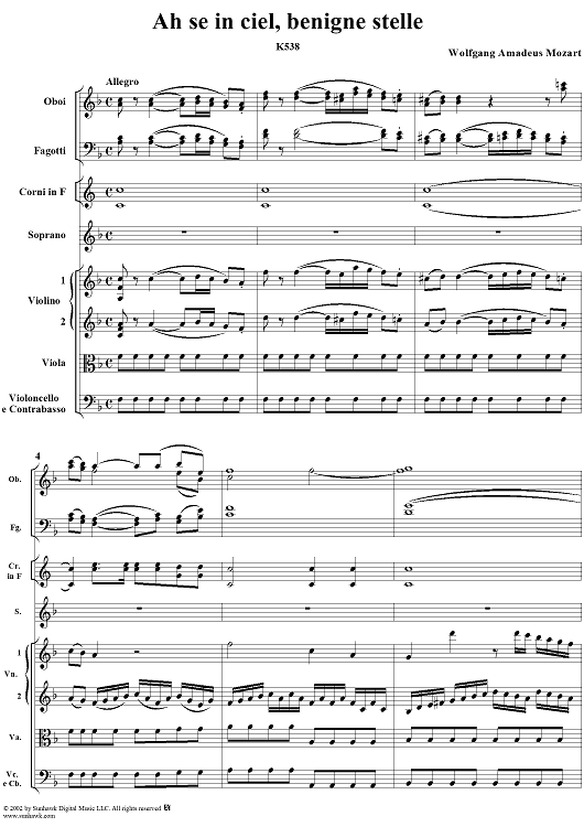 Digital Sheet Music for "Ah se in ciel, benigne stelle", aria, K538 - Full Score by Wolfgang Amadeus Mozart, Metastasio scored for Soprano/Orchestra; id:283325