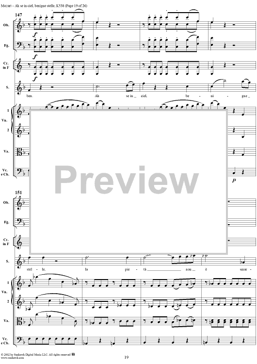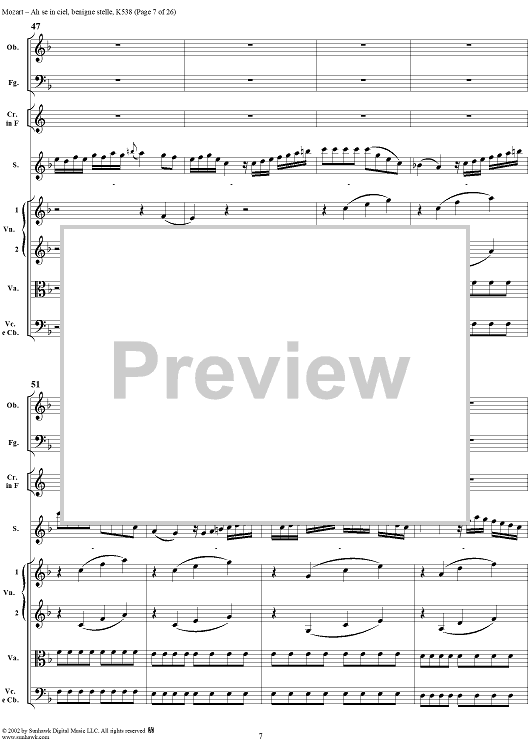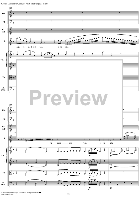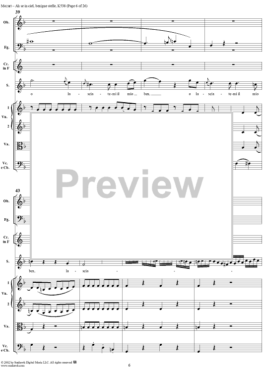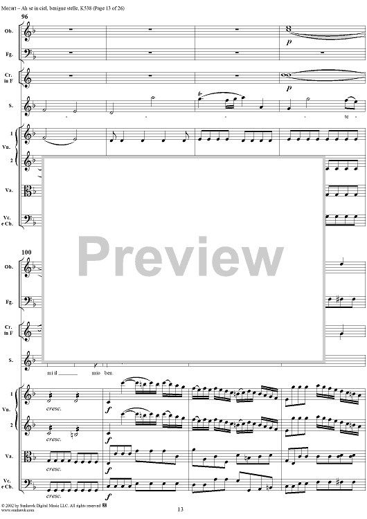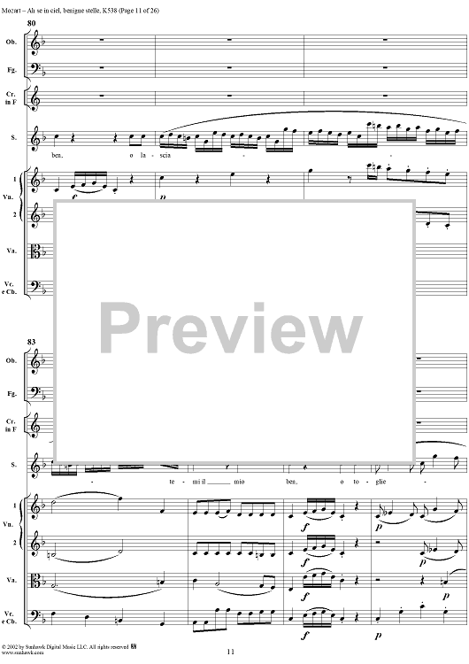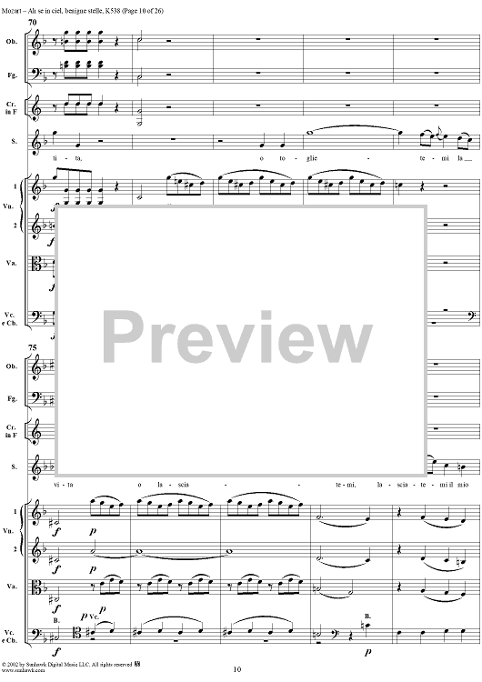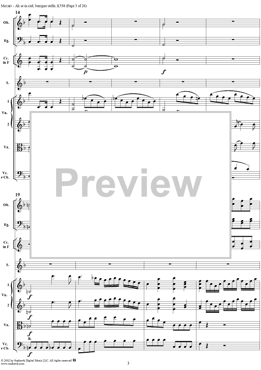 Digital Sheet Music for "Ah se in ciel, benigne stelle", aria, K538 - Full Score by Wolfgang Amadeus Mozart, Metastasio scored for Soprano/Orchestra; id:283325