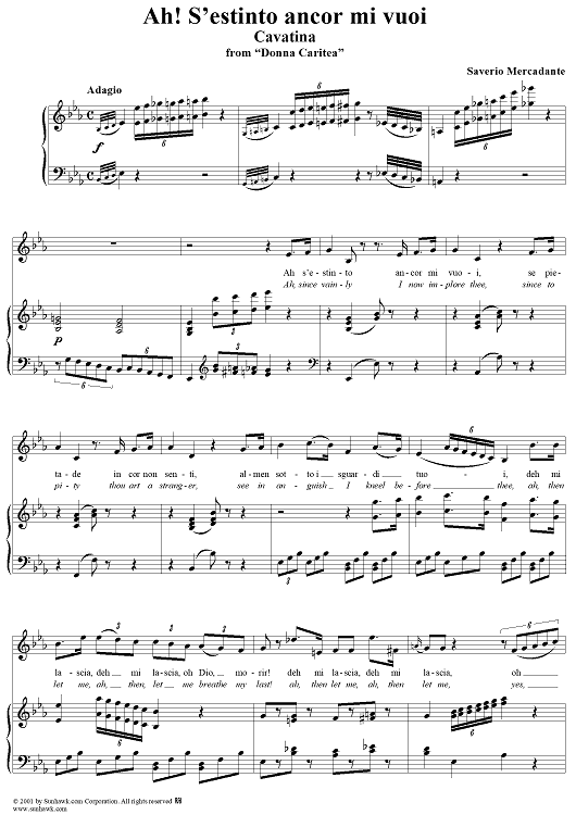 Digital Sheet Music for Ah! S'estinto ancor mi vuoi, from "Donna Caritea" by Saverio Mercadante scored for Voice/Piano; id:273585