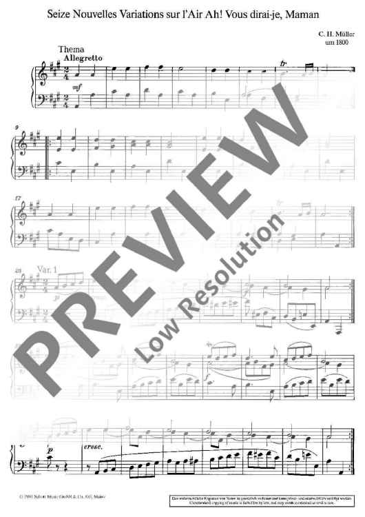 ""Ah! Vous dirai-je, Maman"" Sheet Music by Louis Felix Despréaux
