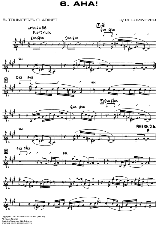 Digital Sheet Music for Aha! by Bob Mintzer scored for B-flat Trumpet/Clarinet; id:502101