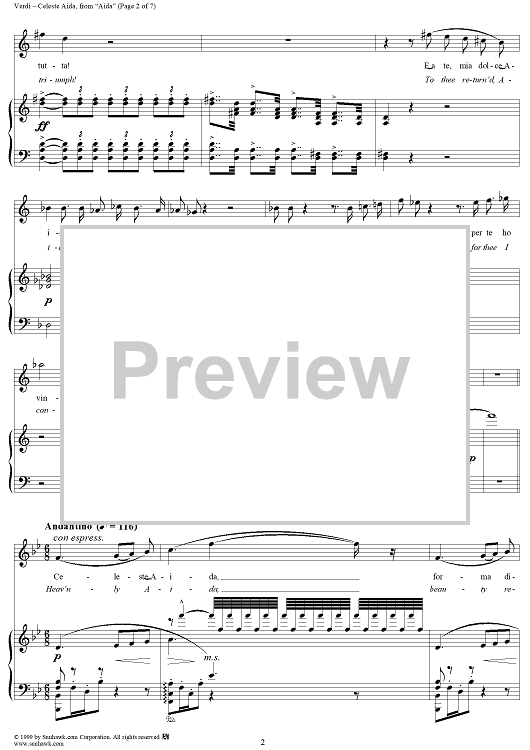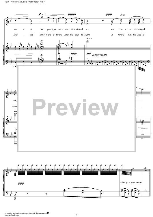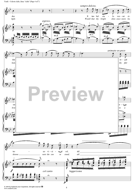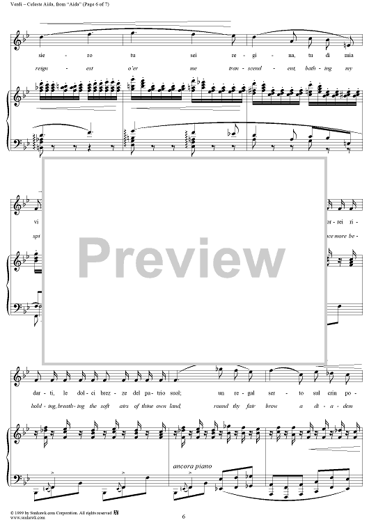 Digital Sheet Music for Aida: Act 1, No. 3a, 3b: Se quel guerrier/Celeste Aida - From "Aida" by Giuseppe Verdi scored for Voice/Piano; id:253705
