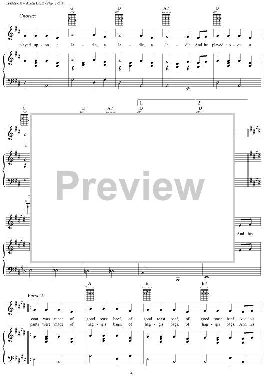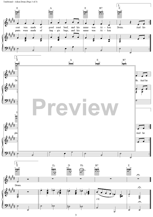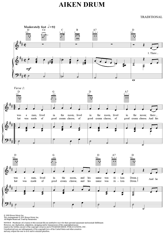 Digital Sheet Music for Aiken Drum by Traditional scored for Piano/Vocal/Chords; id:288988