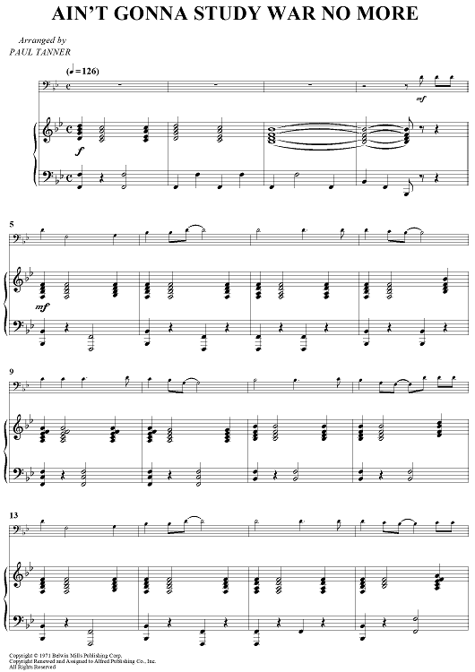 Digital Sheet Music for Ain't Gonna Study War No More by Unknown, Paul Tanner scored for Trombone/Piano; id:437424