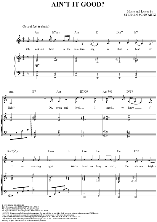 Digital Sheet Music for Ain't It Good? by Stephen Schwartz scored for Piano/Vocal/Chords; id:234600
