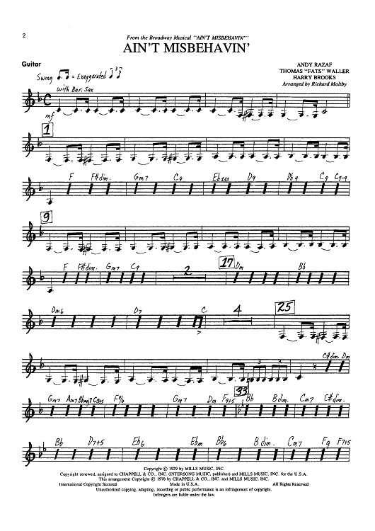 Digital Sheet Music for Ain't Misbehavin' - Guitar by Fats Waller, Harry Brooks, Andy Razaf, Richard Maltby scored for Jazz Ensemble; id:456269