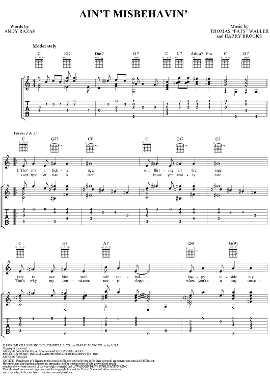 "Ain't Misbehavin'" Sheet Music by Fats Waller