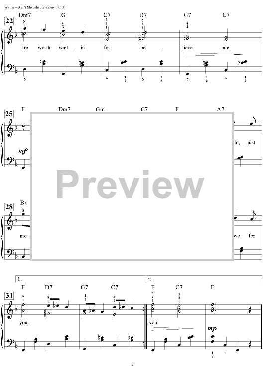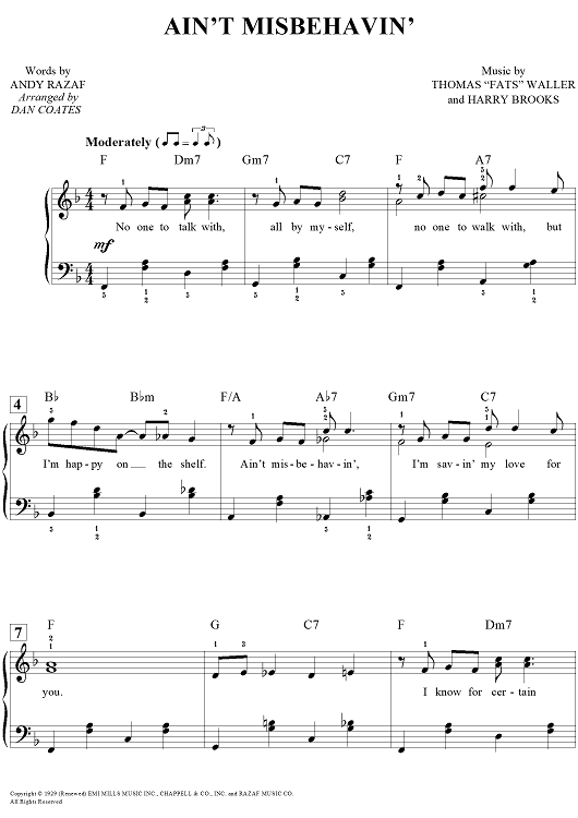 Digital Sheet Music for Ain't Misbehavin' by Dan Coates, Fats Waller, Harry Brooks, Andy Razaf scored for Easy Piano/Vocal/Chords; id:448763