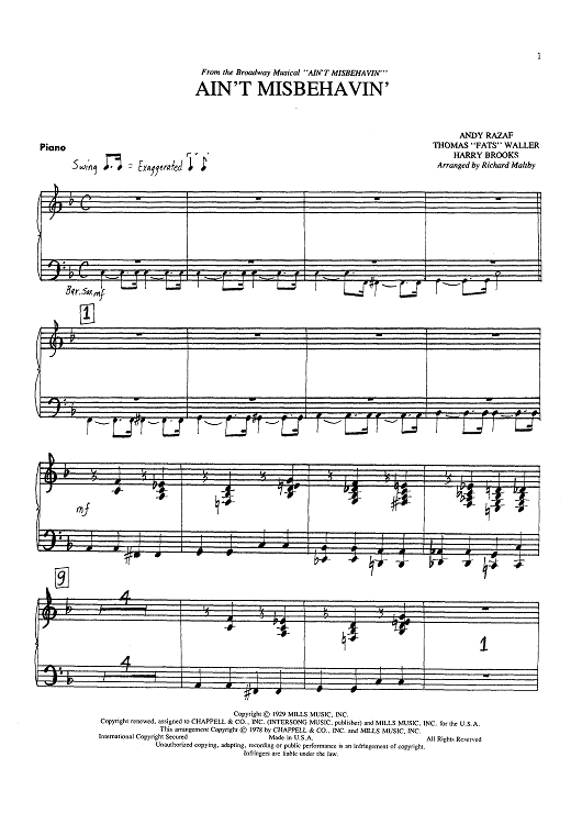 Digital Sheet Music for Ain't Misbehavin' - Piano by Fats Waller, Harry Brooks, Andy Razaf, Richard Maltby scored for Jazz Ensemble; id:456270