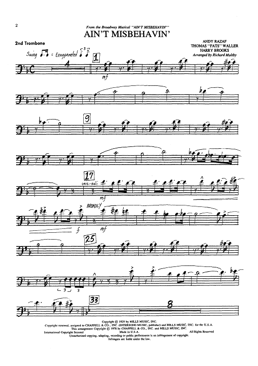 "Ain't Misbehavin' - Trombone 2" Sheet Music by Fats Waller