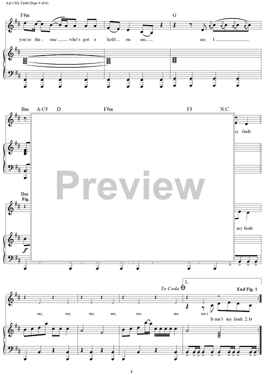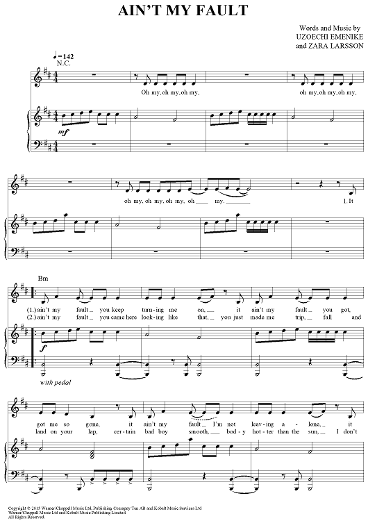 Digital Sheet Music for Ain't My Fault by Zara Larsson, Uzoechi Emenike scored for Piano/Vocal/Chords; id:462425
