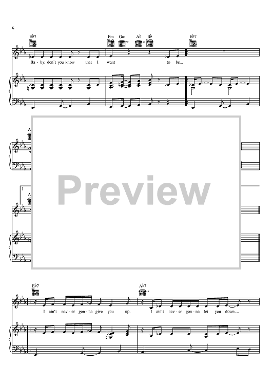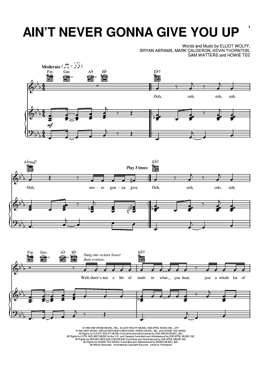 Digital Sheet Music for Ain't Never Gonna Give You Up by Elliot Wolff, Paula Abdul, Sam Watters, Bryan Abrams, Mark Calderon, Howie Tee, Kevin Thornton scored for Piano/Vocal/Chords; id:402565