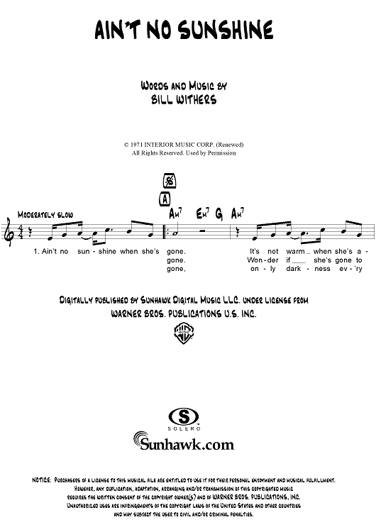"Ain't No Sunshine" Sheet Music by Bill Withers