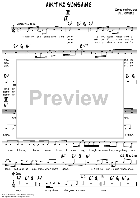 Digital Sheet Music for Ain't No Sunshine by Bill Withers scored for Lead Sheet; id:312133