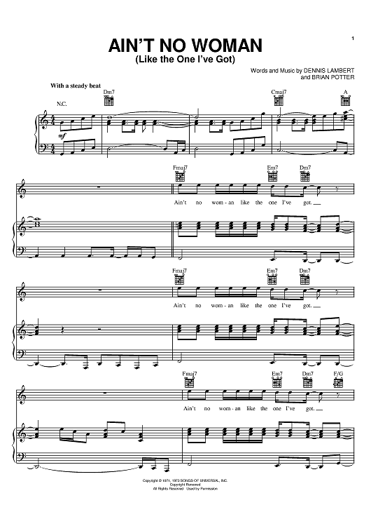 Digital Sheet Music for Ain't No Woman (Like The One I've Got) by Dennis Lambert, Four Tops, Brian Potter scored for Piano/Vocal/Chords; id:395032
