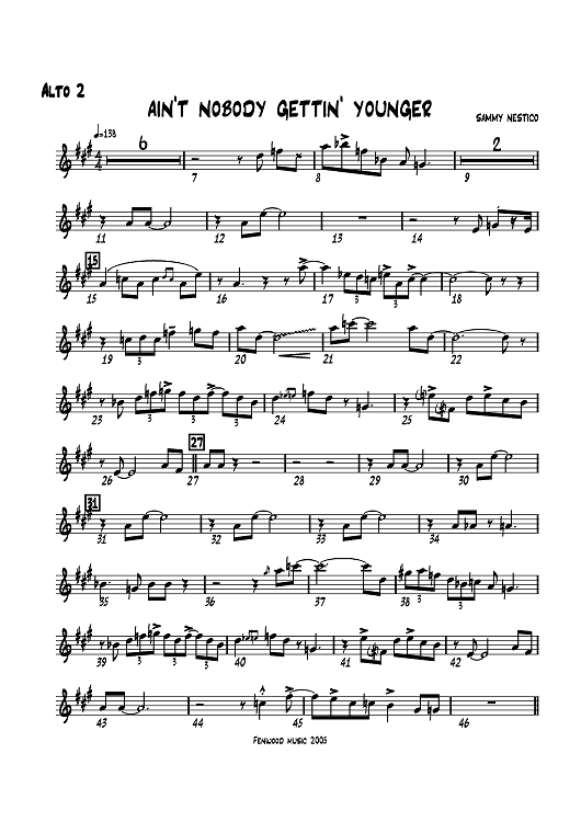 "Ain't Nobody Gettin' Younger - Alto Sax 2" Sheet Music by Sammy Nestico