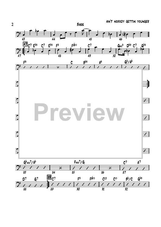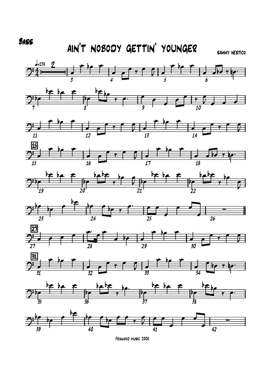 "Ain't Nobody Gettin' Younger - Bass" Sheet Music by Sammy Nestico