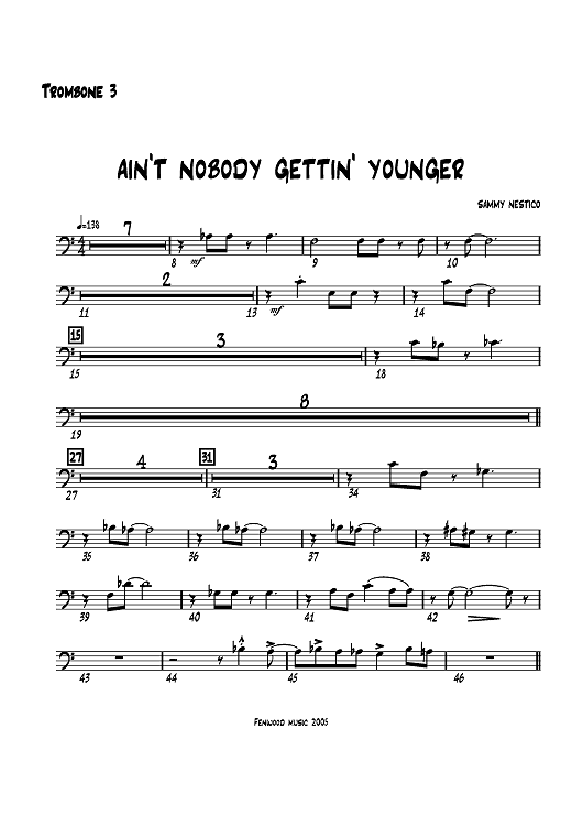 "Ain't Nobody Gettin' Younger - Trombone 3" Sheet Music by Sammy Nestico