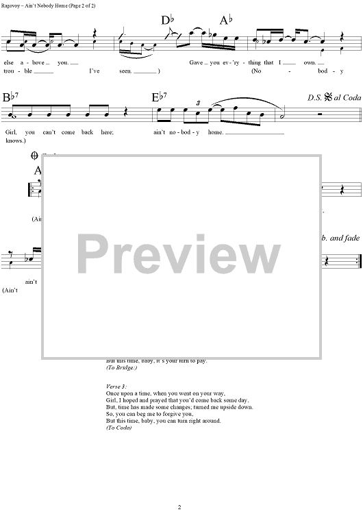Digital Sheet Music for Ain't Nobody Home by Jerry Ragovoy scored for Lead Sheet; id:290773
