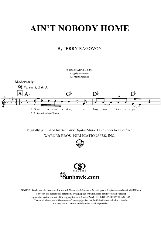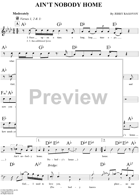 "Ain't Nobody Home" Sheet Music by Jerry Ragovoy