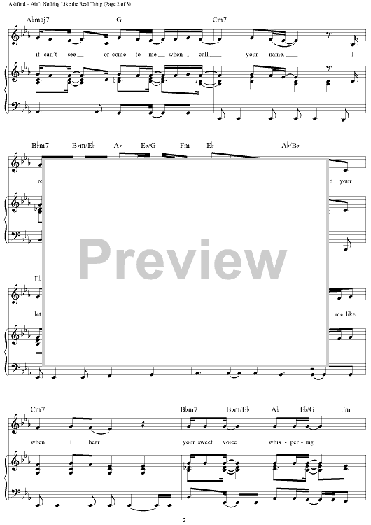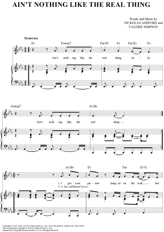 Digital Sheet Music for Ain't Nothing Like the Real Thing by Marvin Gaye, Nickolas Ashford, Valerie Simpson, Tammi Terrell scored for Piano/Vocal/Chords; id:362946