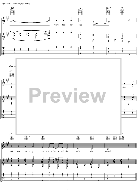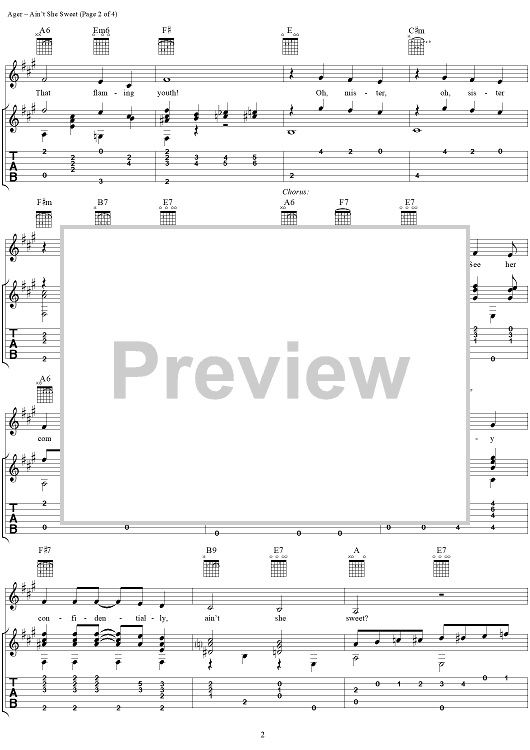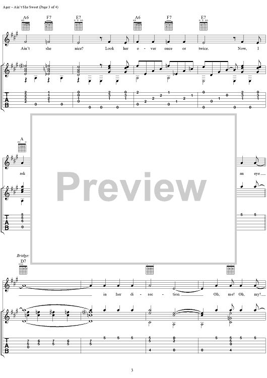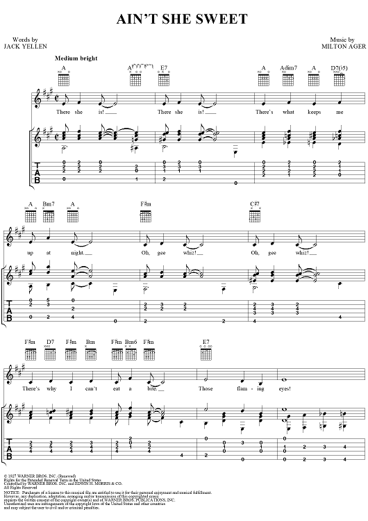 Digital Sheet Music for Ain't She Sweet by Milton Ager, Jack Yellen, Jerry Silverman scored for Guitar Tab/Vocal; id:277982