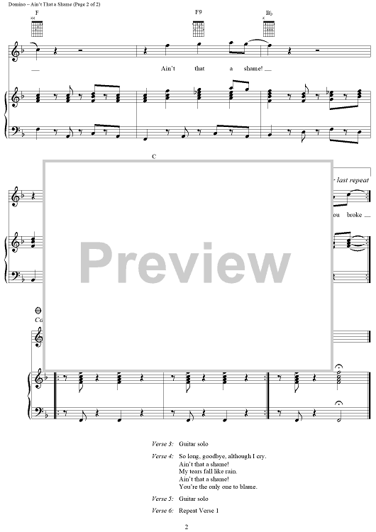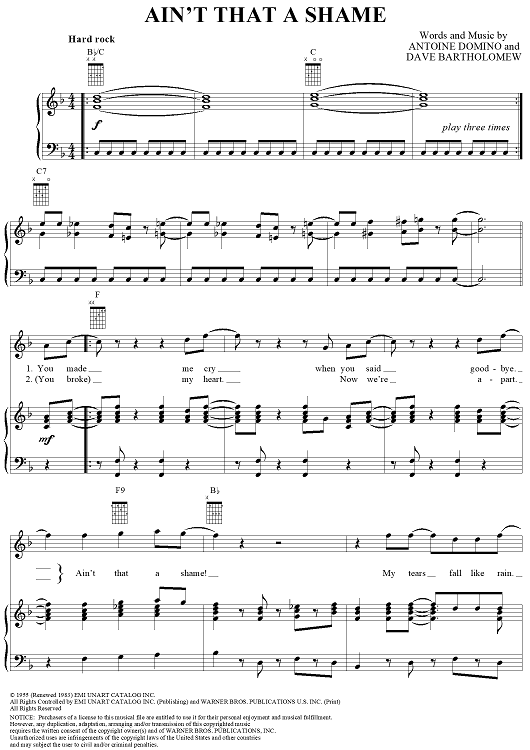 Digital Sheet Music for Ain't That a Shame by Dave Bartholomew, Fats Domino scored for Piano/Vocal/Chords; id:139896
