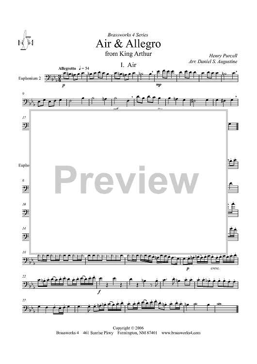 Digital Sheet Music for Air & Allegro (from King Arthur) - Euphonium 2 BC by Henry Purcell, Daniel S. Augustine scored for Tuba/Euphonium Quartet; id:358146