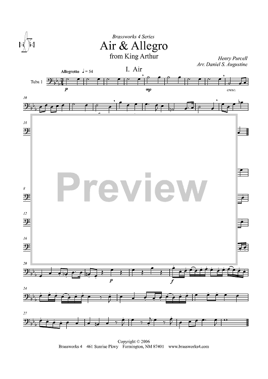Digital Sheet Music for Air & Allegro (from King Arthur) - Tuba 1 by Henry Purcell, Daniel S. Augustine scored for Tuba/Euphonium Quartet; id:358148