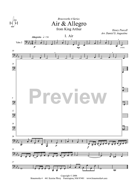 Digital Sheet Music for Air & Allegro (from King Arthur) - Tuba 2 by Henry Purcell, Daniel S. Augustine scored for Tuba/Euphonium Quartet; id:358149