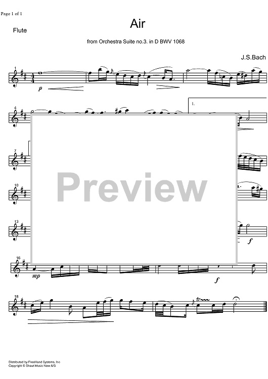 "Air D Major BWV 1068 - Flute Solo" Sheet Music by Johann Sebastian Bach