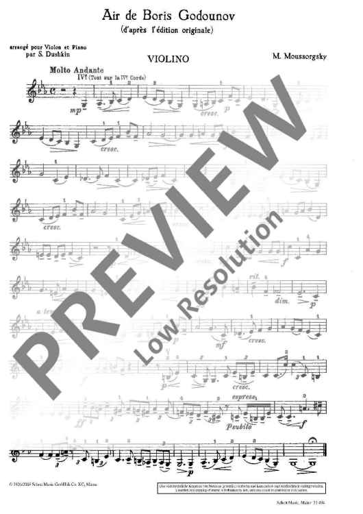 "Air de Boris Godounov" Sheet Music by Modest Moussorgsky