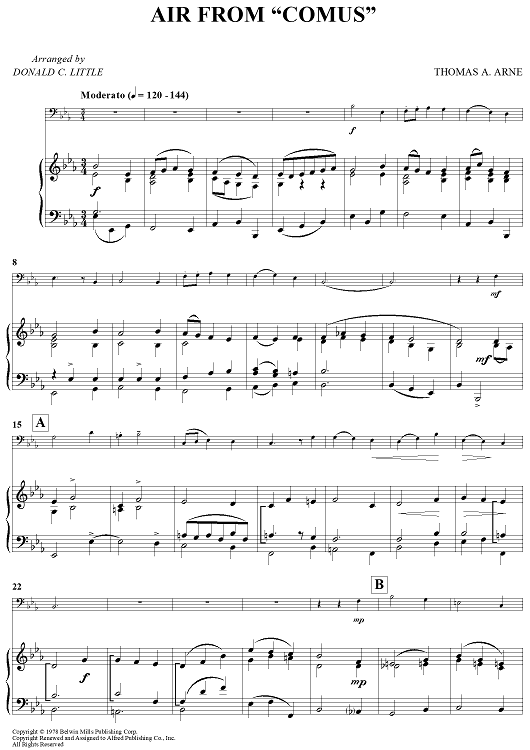 "Air From "Comus"" Sheet Music by Thomas Arne