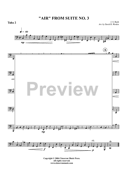Digital Sheet Music for "Air" from Suite No. 3 - Tuba 2 by David Werden, Johann Sebastian Bach scored for Tuba Quartet; id:356526