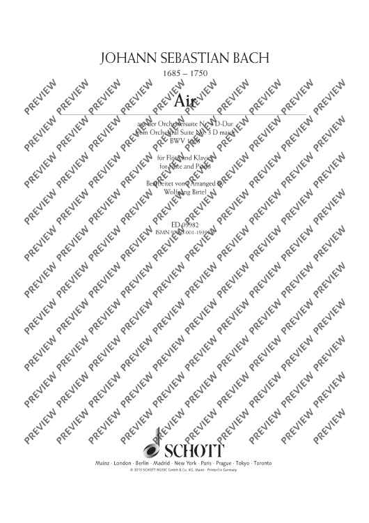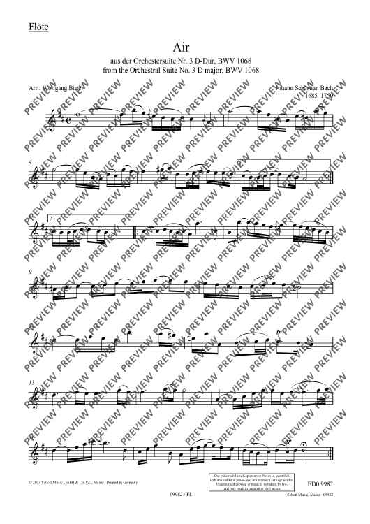 Digital Sheet Music for Air in D major by Johann Sebastian Bach, Wolfgang Birtel scored for Flute And Piano; id:485524